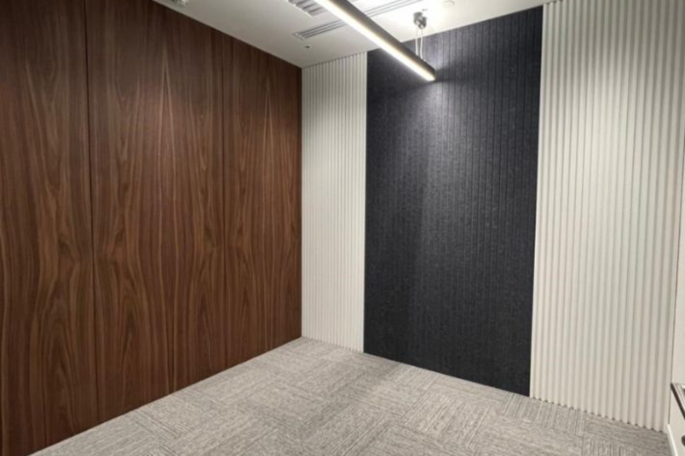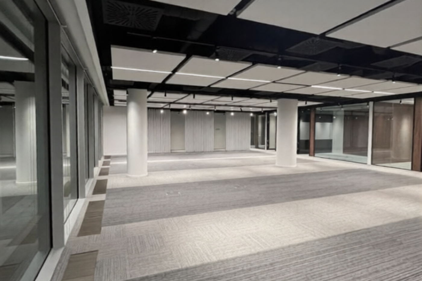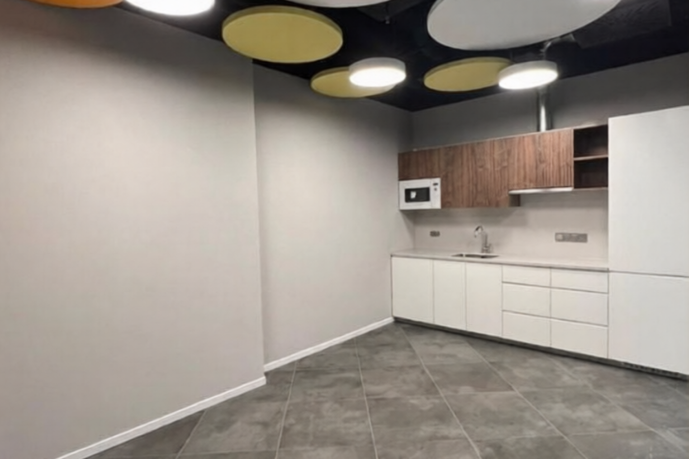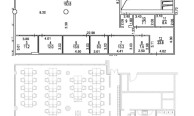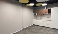 The office area is 411 sq. m., designed for 50 workstations. The functional layout includes 2 offices, 2 meeting rooms, a mini kitchen, a server room, an archive, and a reception area. The mini kitchen is equipped with appliances. An automatic fire alarm system is installed. The air conditioning is a four-pipe fan coil system. Modern renovations are available.