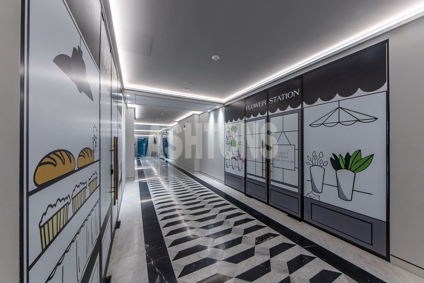 The space has a total area of 102.6 sq. m. A separate entrance is through the lobby. A doorman greets you at the entrance and opens the door. The space is in shell & core condition. Display windows face Tverskaya Street. Electrical power is 40 kW, with the possibility of increasing. All central utilities are included. A ventilation system is available.