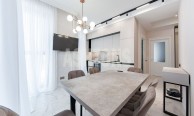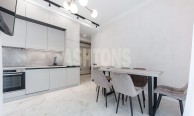 A beautiful 4-room apartment is available for rent in the premium SPIRES residential complex on Nezhinskaya ulitsa. The neighbors have already completed renovations! The functional layout includes a kitchen-dining room, a living room, 2 bedrooms with walk-in closets, 1 combined bathroom with a bath (with a window), 1 combined bathroom with a shower, and a hallway with a walk-in closet. The apartment is fully furnished with new designer furniture. There is the potential to create a kitchen-dining room-living room. The built-in kitchen is fully equipped with all high-quality premium appliances. The bathrooms feature high-quality plumbing. Panoramic views from the windows on 3 sides: the Setun River Valley Nature Reserve, the Moscow-City International Business Center, and a quiet, green courtyard. An underground parking space is available for rent (if needed). The SPIRES urban residences are located near three metro stations: Slavyansky Bulvar, Davydkovo, and Minskaya. The property enjoys a beautiful, picturesque location between the Setun River Valley Nature Reserve and the Matveevsky Forest. Within walking distance are kindergartens, schools, the Oceania and Vremena Goda shopping centers, a clinic, a fitness center, beauty salons, and supermarkets. Easy access to Kutuzovsky and Lomonosovsky Prospekt, as well as the Third Transport Ring.