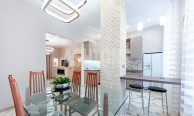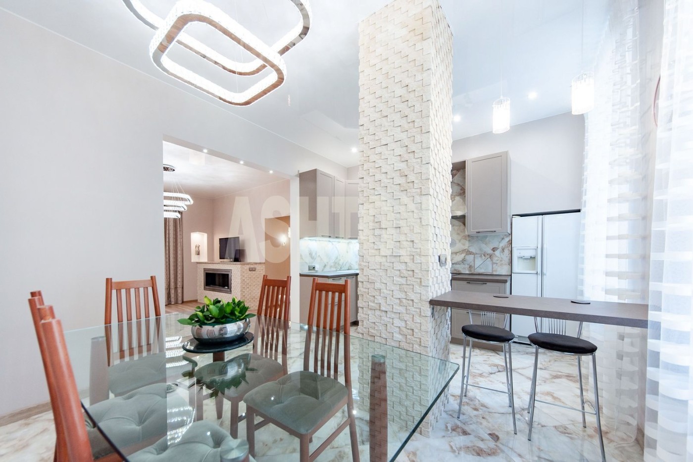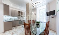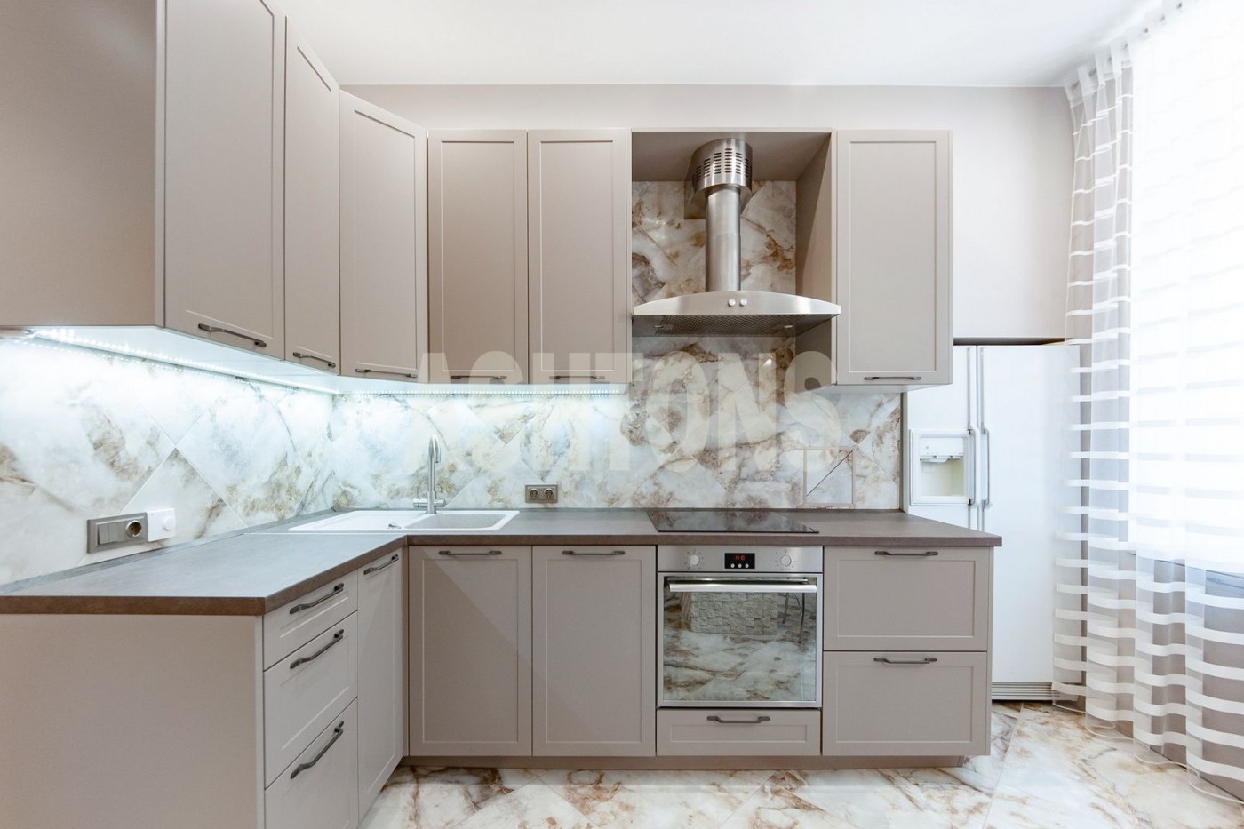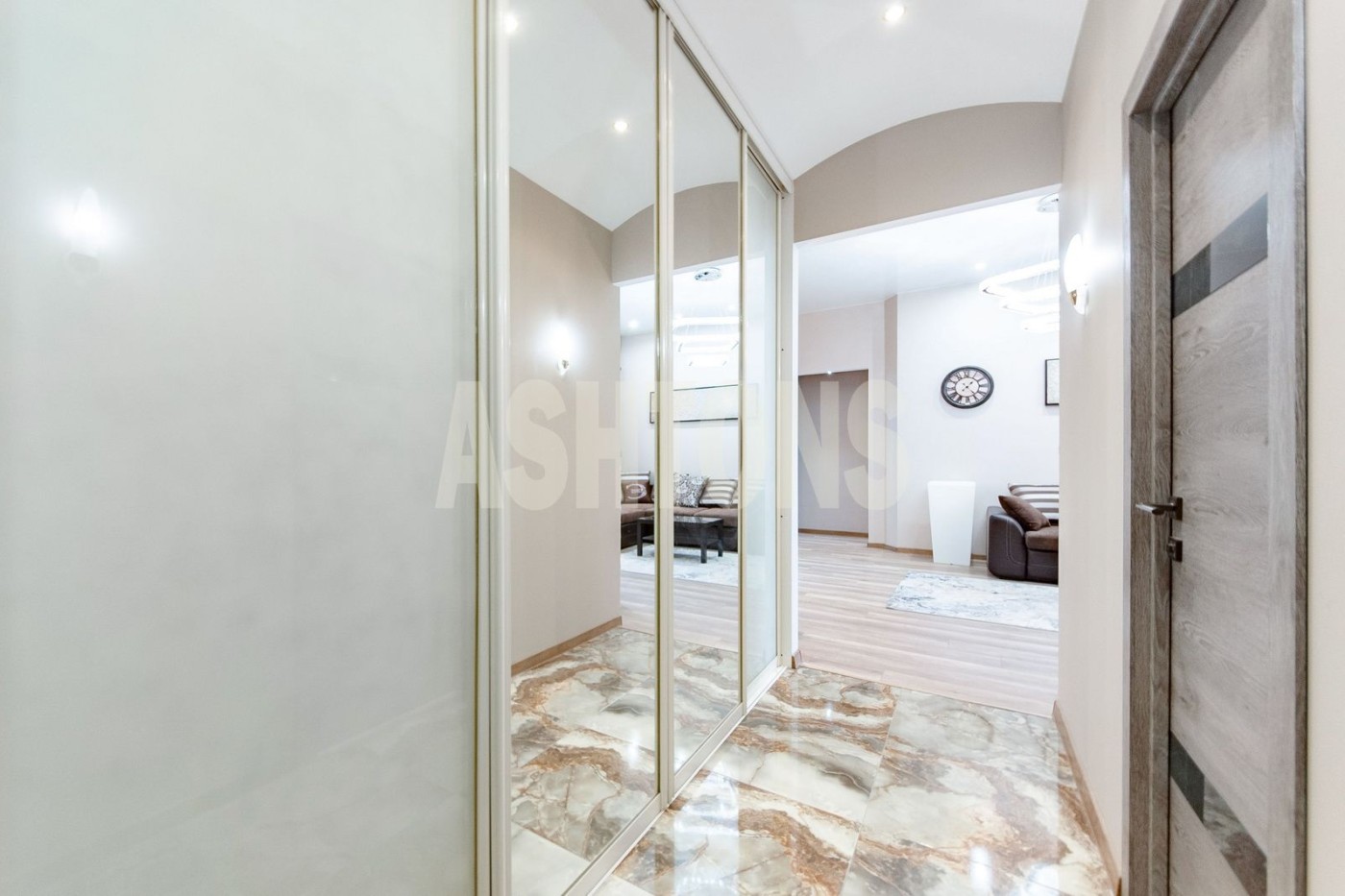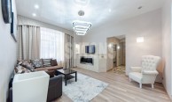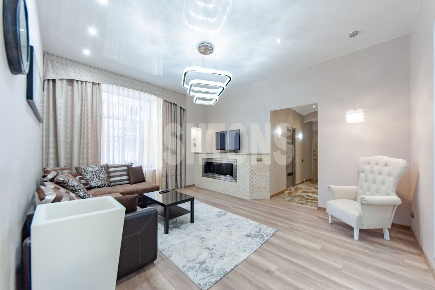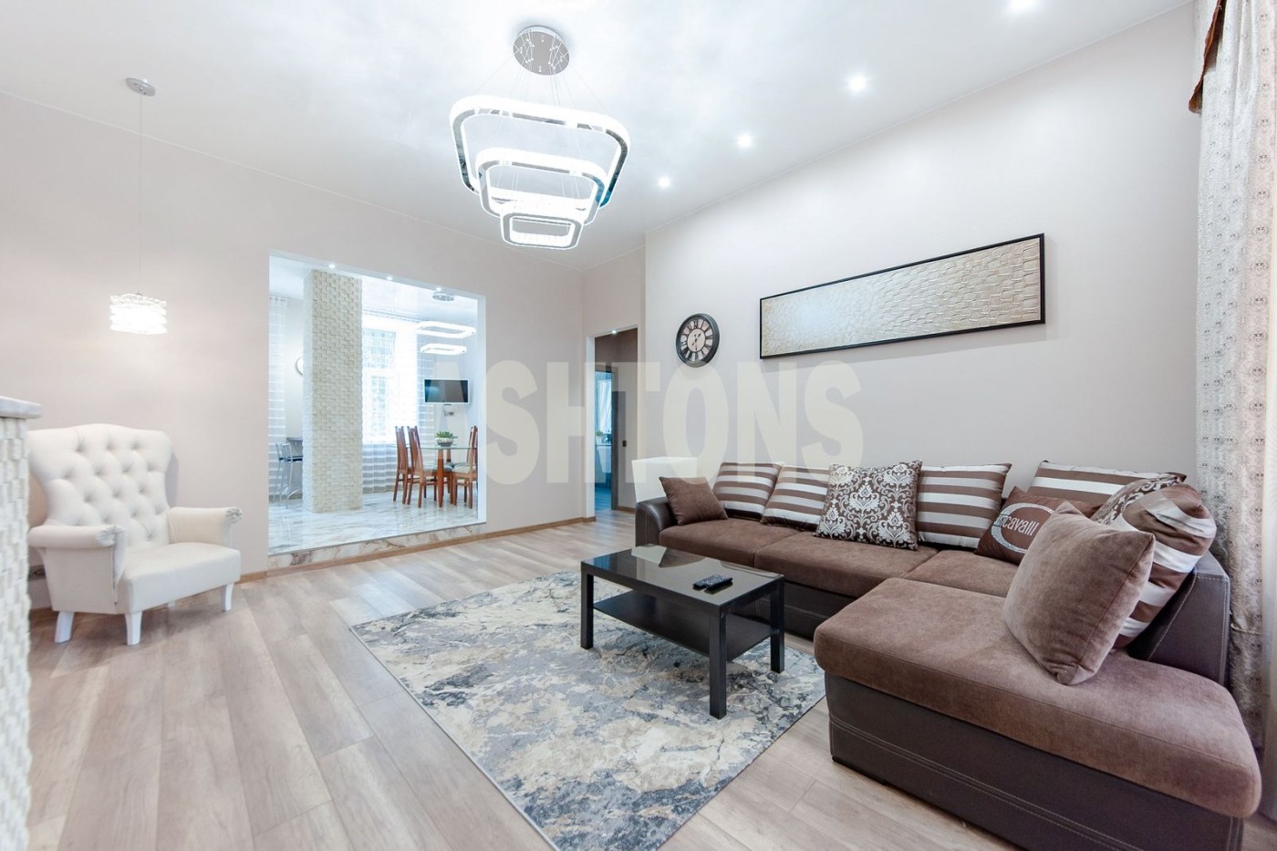 A stylish three-room apartment is available for rent in a brick building at 26/2 Plyushchikha ulitsa, Central Administrative District, Khamovniki. The building has a fenced, secure territory.