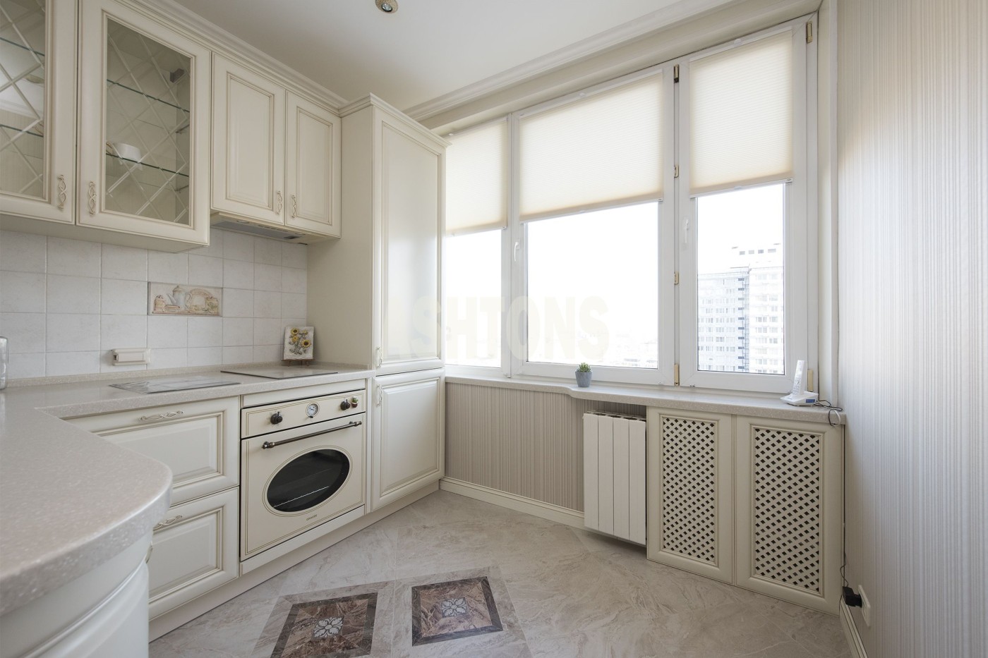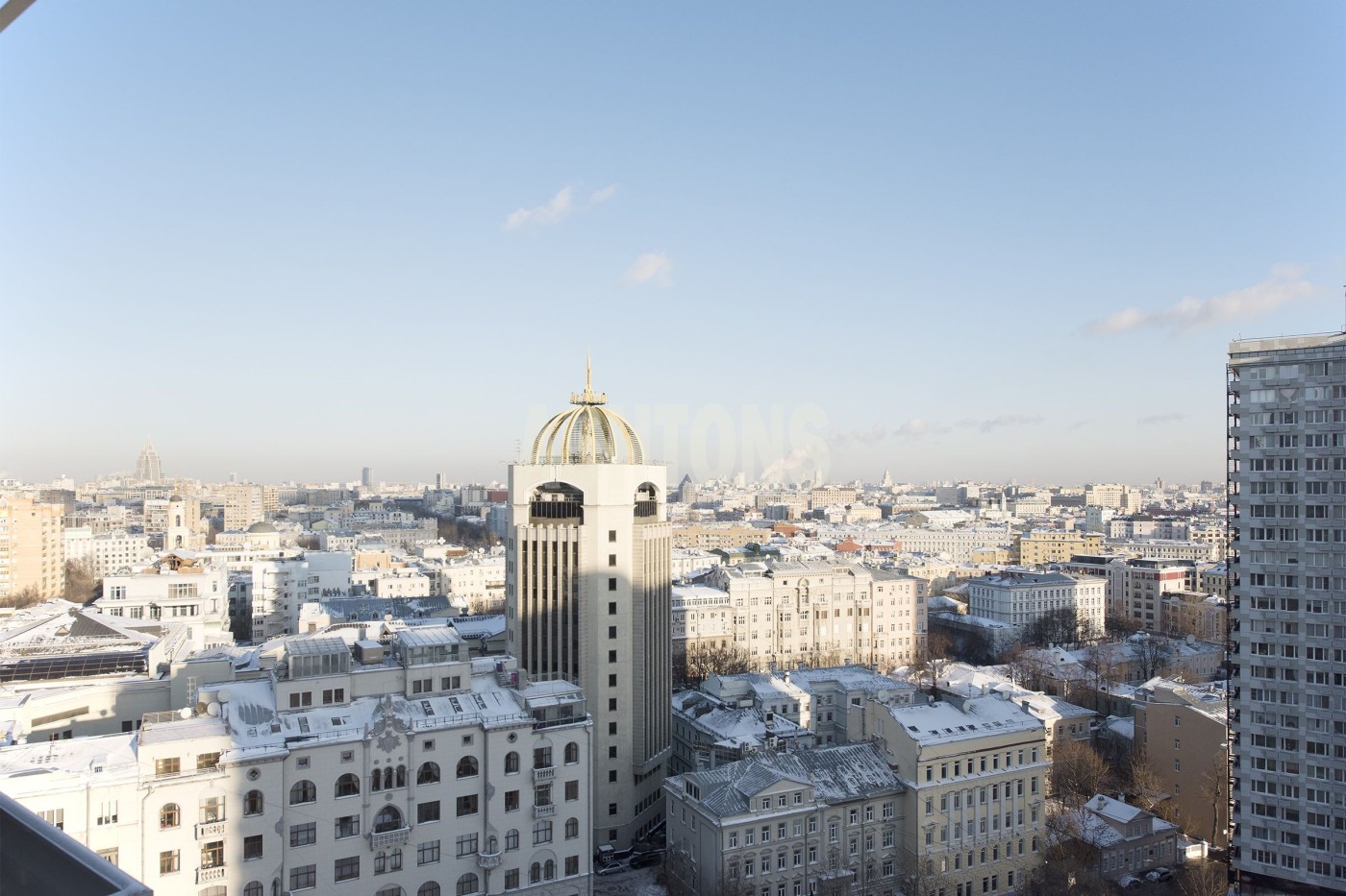 A three-room apartment on Noviy Arbat. Designer renovation. Panoramic city views.