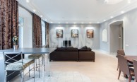 A spacious 4-room apartment in the elite center of Moscow on Ostozhenka Street in a historic building is offered for rent. The apartment has a very convenient layout: a large kitchen-dining room-living room, 3 isolated rooms, 2 combined bathrooms with bathtubs and a shower, a spacious loggia, a large dressing room, a hall. The apartment is fully furnished (expensive designer furniture), equipped with all the necessary high-quality expensive household appliances. The apartment is very quiet. Parking is in the closed courtyard of the house. Presentable entrance with a concierge. Developed infrastructure of the area: cafes, shops, restaurants, beauty salons.