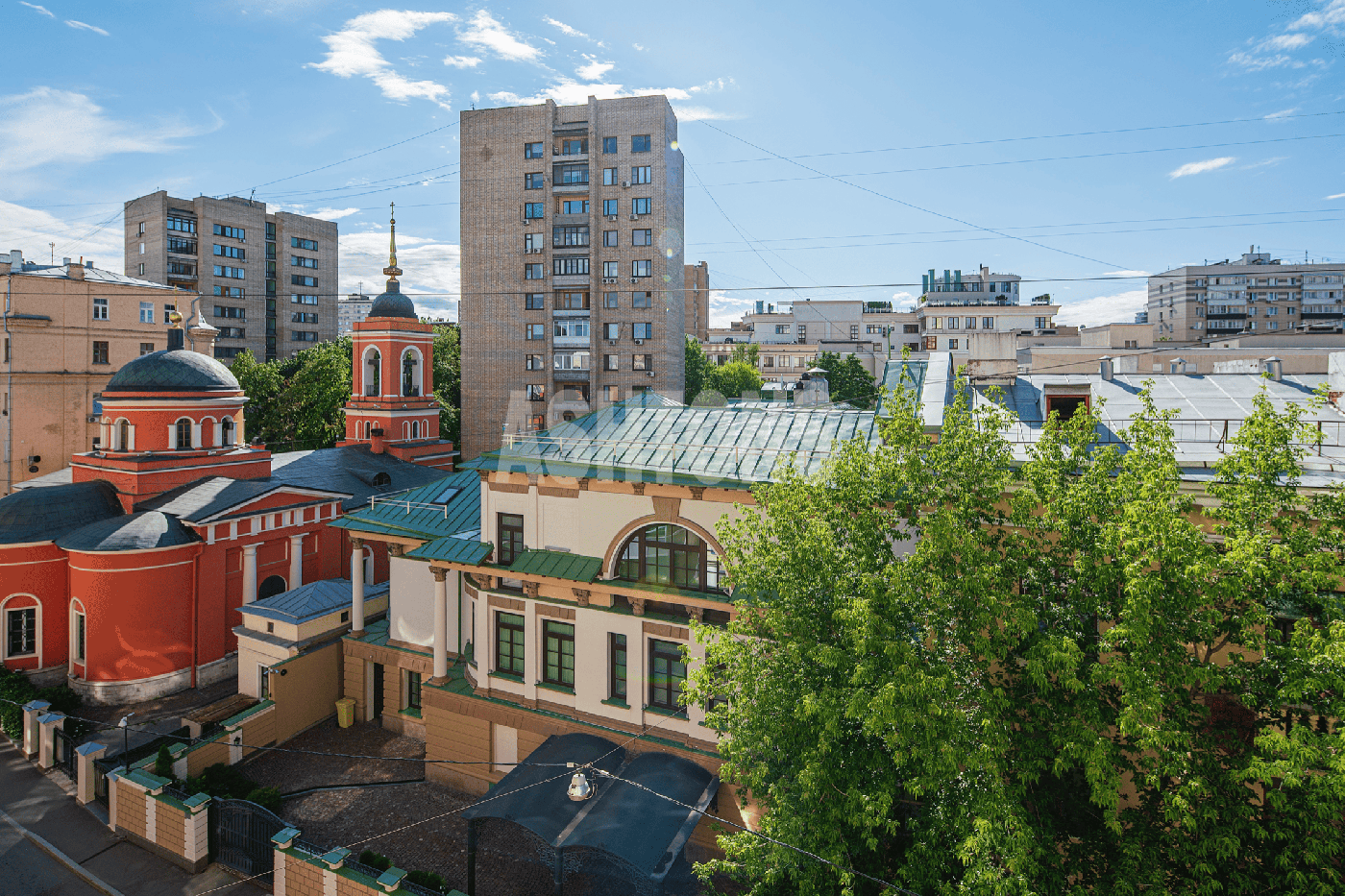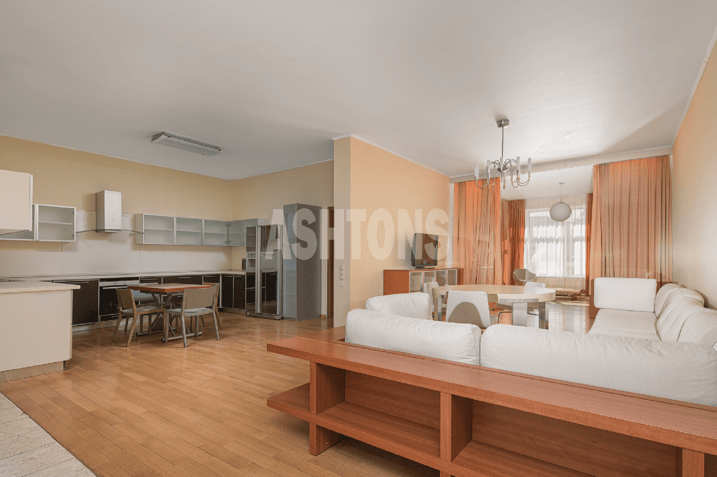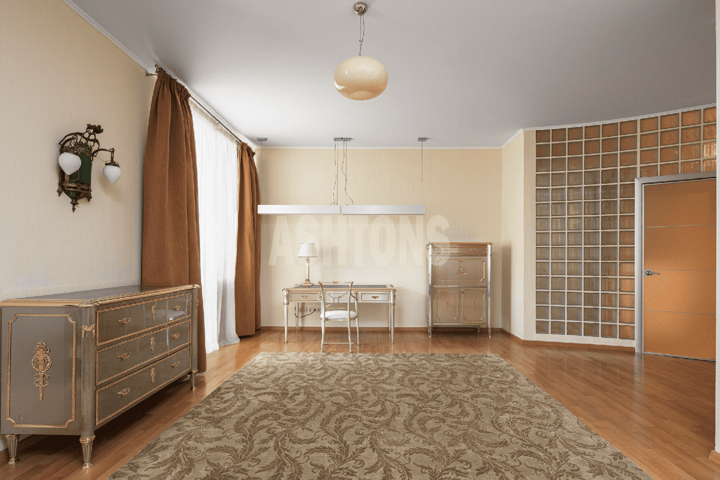 A luxurious 5-room apartment is available for rent in the Filippovskiy residential complex, Central Administrative District, Arbat district, near the Boulevard Ring.