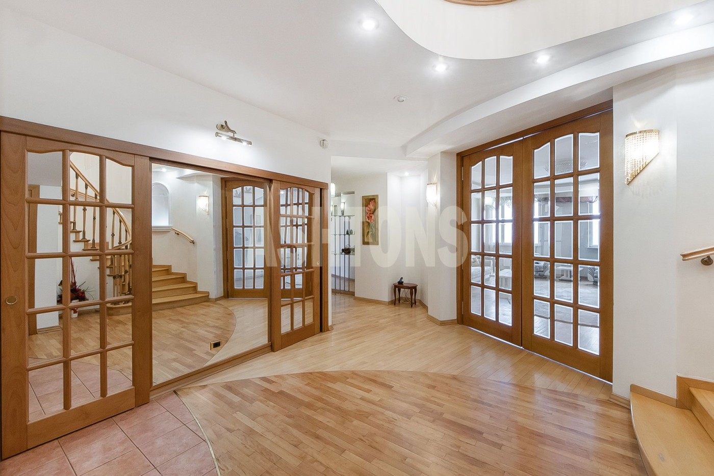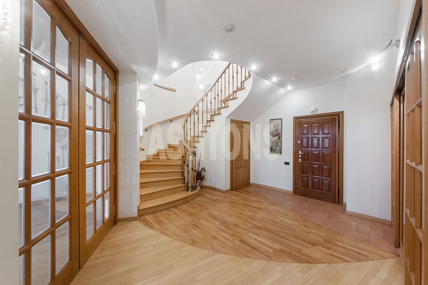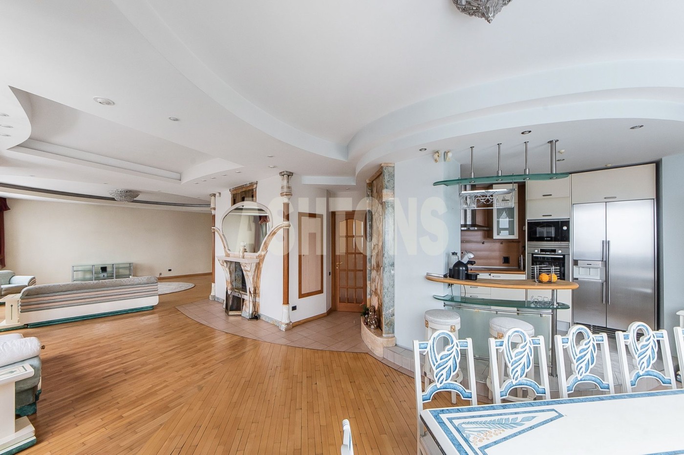 A 6-room apartment is offered for rent in the residential complex "Solnechny Bereg" at the address: Michurinsky Prospekt 29, Western Administrative District, Ramenki district. Functional layout of the apartment: 1st floor: living-dining room combined with a kitchen, 2 separate rooms for general use, guest bathroom, bathroom with shower, dressing room, storage room. 2nd floor: laundry room, dressing room, 2 bedrooms, 2 bathrooms with a bathtub and a shower, study. The living room has a working fireplace. The apartment has a winter garden and a waterfall. The apartment is fully furnished and equipped with all the necessary appliances for a comfortable stay. Designer renovation with classic elements. Residential complex with a fenced and guarded territory. Landscaped territory of the house with a play area. There is underground parking. Ecologically clean area on the territory of the nature reserve. Developed infrastructure of the area. Within walking distance of the metro station Ramenki.