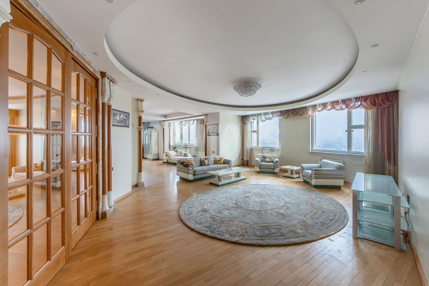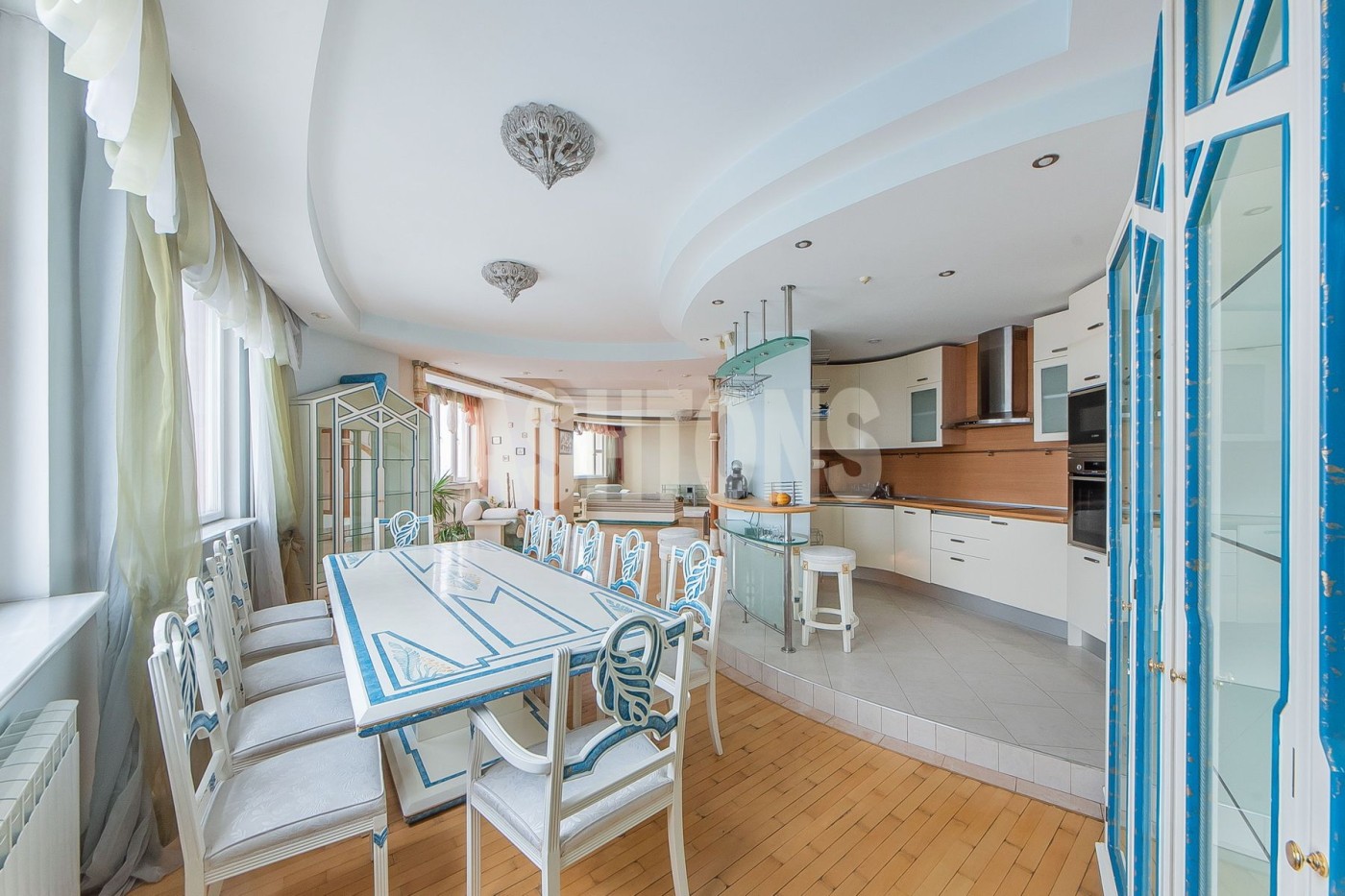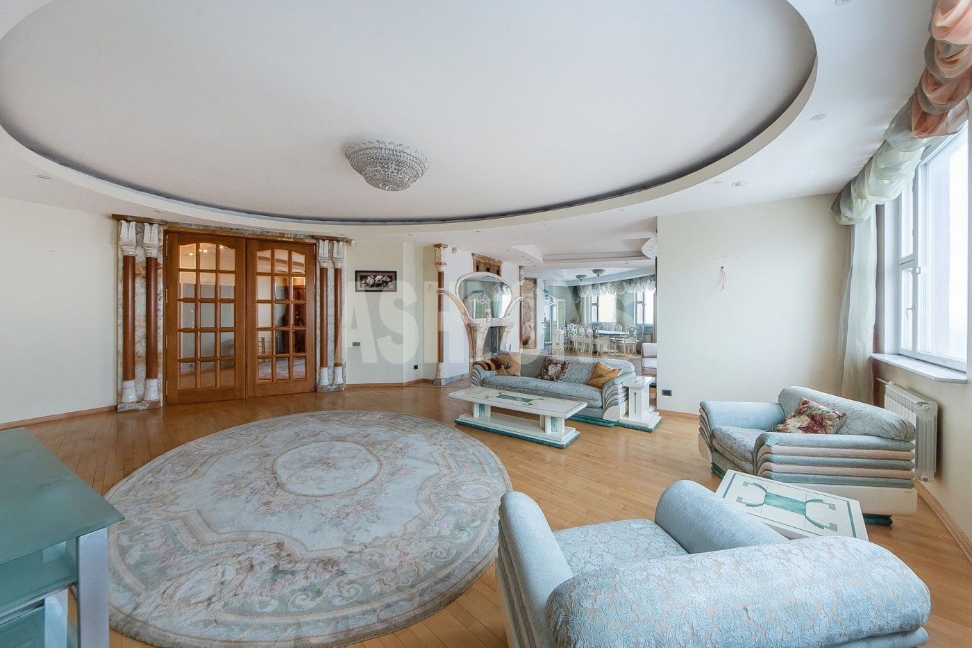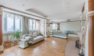A 6-room apartment is offered for rent in the residential complex "Solnechny Bereg" at the address: Michurinsky Prospekt 29, Western Administrative District, Ramenki district. Functional layout of the apartment: 1st floor: living-dining room combined with a kitchen, 2 separate rooms for general use, guest bathroom, bathroom with shower, dressing room, storage room. 2nd floor: laundry room, dressing room, 2 bedrooms, 2 bathrooms with a bathtub and a shower, study. The living room has a working fireplace. The apartment has a winter garden and a waterfall. The apartment is fully furnished and equipped with all the necessary appliances for a comfortable stay. Designer renovation with classic elements. Residential complex with a fenced and guarded territory. Landscaped territory of the house with a play area. There is underground parking. Ecologically clean area on the territory of the nature reserve. Developed infrastructure of the area. Within walking distance of the metro station Ramenki.