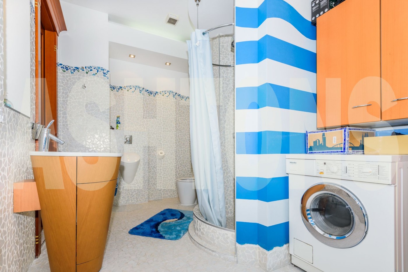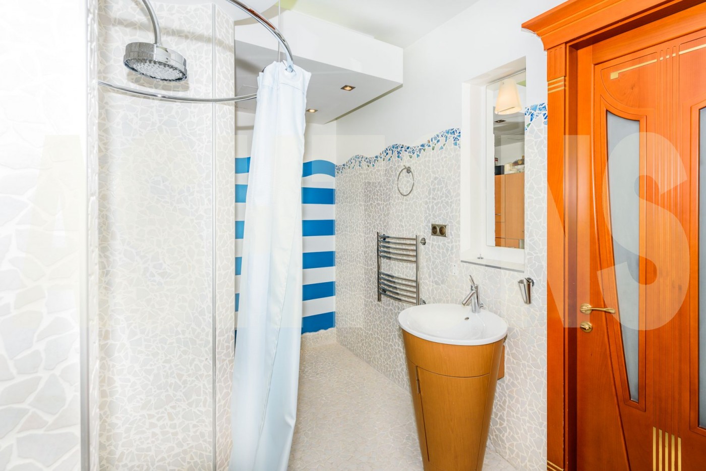 В квартире удобная планировка: кухня, большая гостиная с разделением на обеденную зону и зону отдыха, 2 изолированные спальни, гардеробная, 2 полноценных сан.узла, 1 гостевой. Квартира полностью меблирована в едином стиле мебелью из натуральных дорогих материалов, оборудована всей необходимой качественной бытовой техникой, системой кондиционирования воздуха, теплые полы.