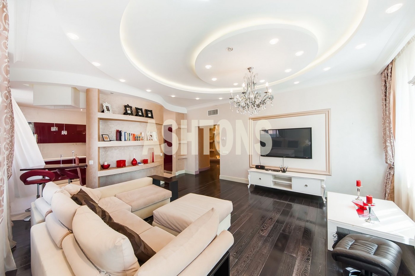 В квартире выполнен дизайнерский ремонт, удобная планировка: просторная кухня - гостиная, спальня со своей ванной и гардеробной, гостевой сан.узел с душевой кабиной, балкон.