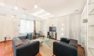 В квартире очень удобная планировка: кухня-гостиная, спальня со своей ванной комнатой и гардеробной, постирочная, отдельный сан.узел с душевой кабиной, просторный холл. Квартира полностью меблирована, оборудована качественной бытовой техникой. Развитая инфраструктура района Арбат и центра Москвы: магазины, кафе, рестораны, прогулочные зоны. Во дворе хорошая детская площадка, подземный паркинг, есть машиноместо.
