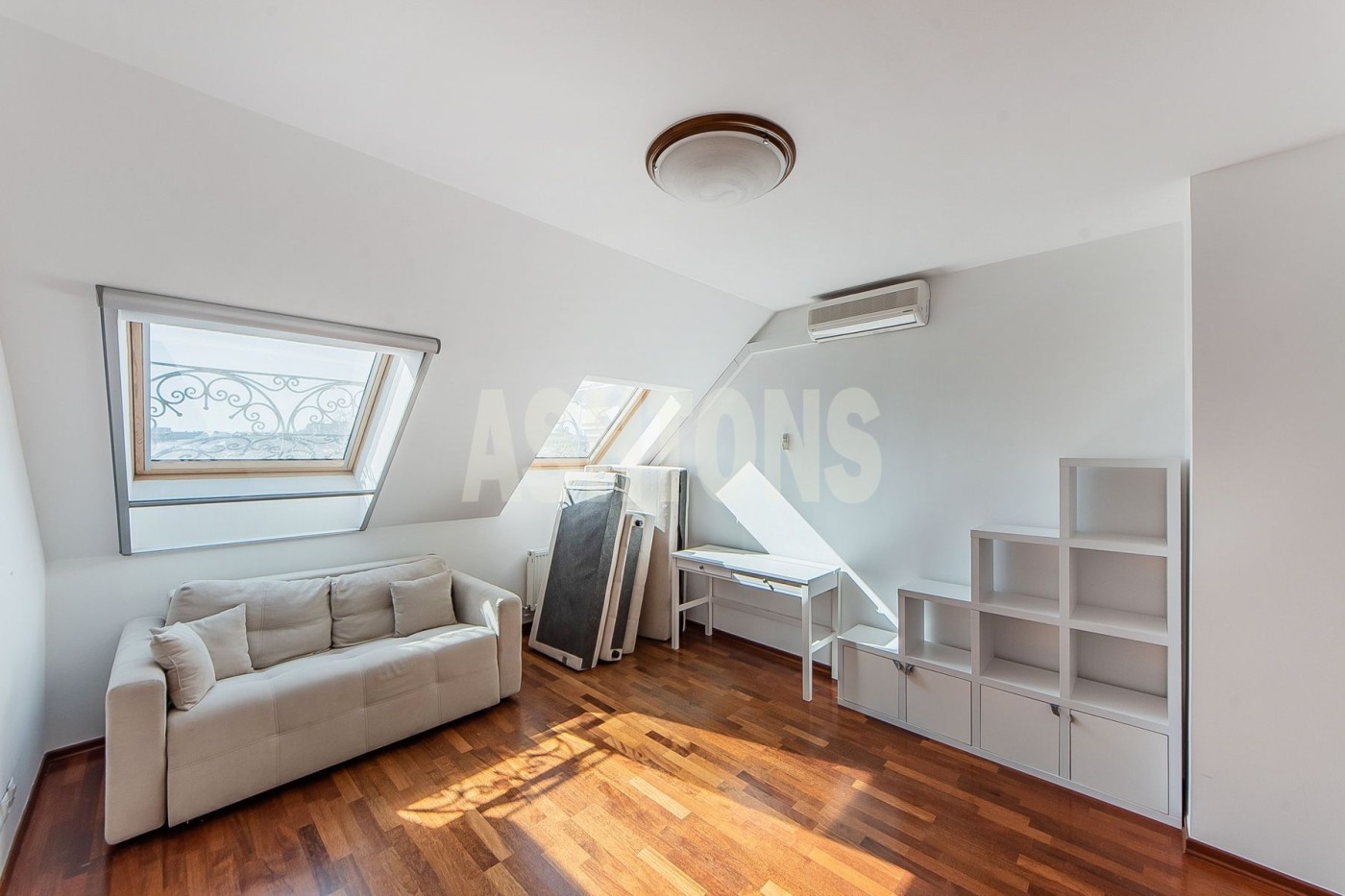 The apartment is partially furnished and equipped with all necessary appliances. Plenty of storage space. High-quality, minimalist renovations in light tones.