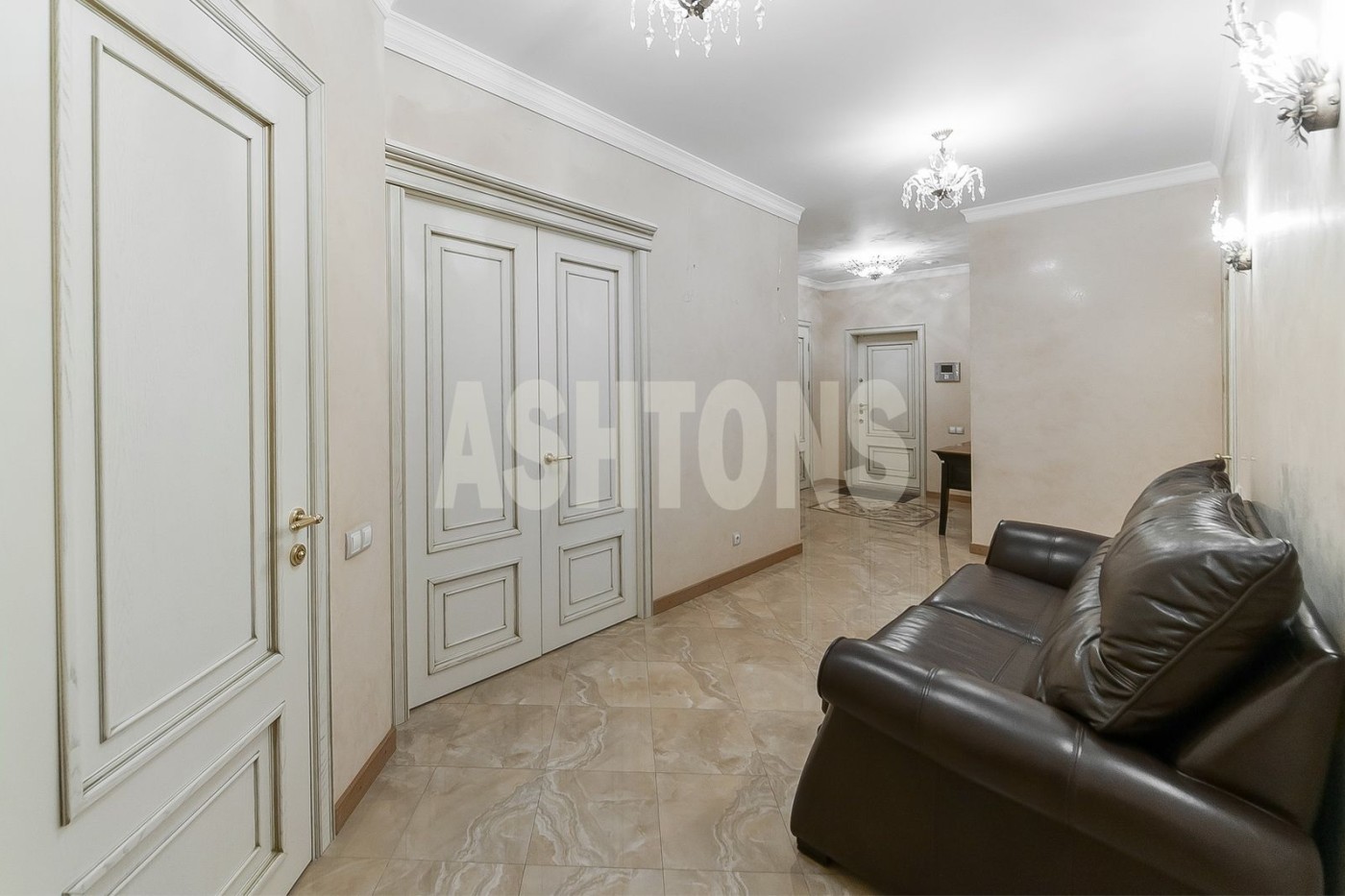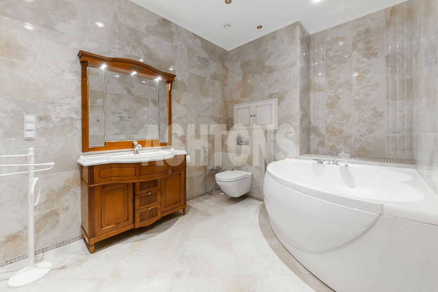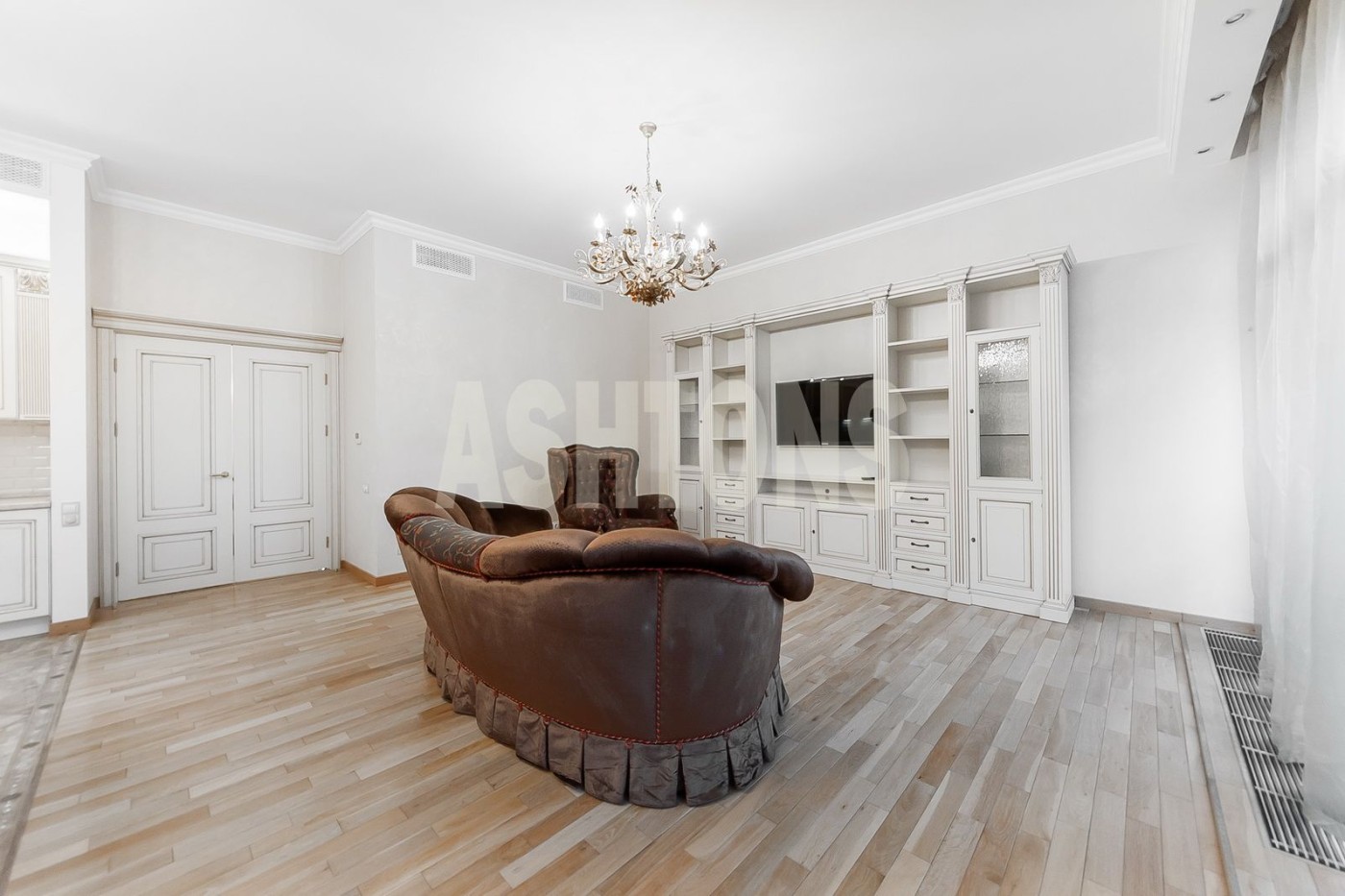 Functional layout: kitchen-living room, second bedroom with walk-in closets, two bathrooms with a jacuzzi and shower, loggia, and hallway. The apartment is FURNISHED (bedroom and study furniture included), and the option to remove or purchase additional furniture is negotiable. Expensive renovation using natural materials. The built-in kitchen is equipped with all appliances from leading global manufacturers. The windows face away from Tverskoy Boulevard. One parking space is available in the underground parking garage.