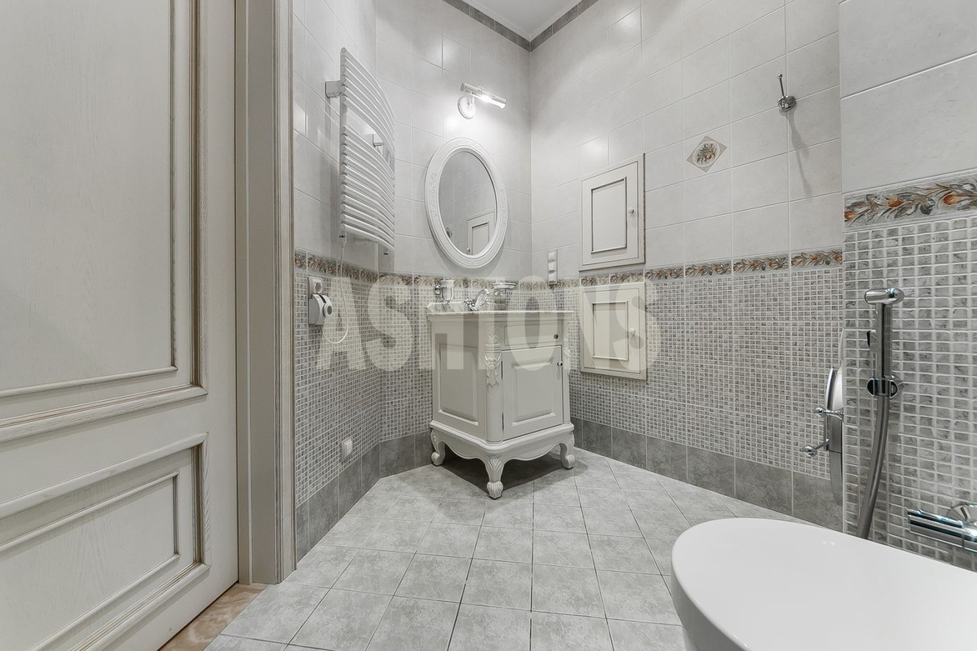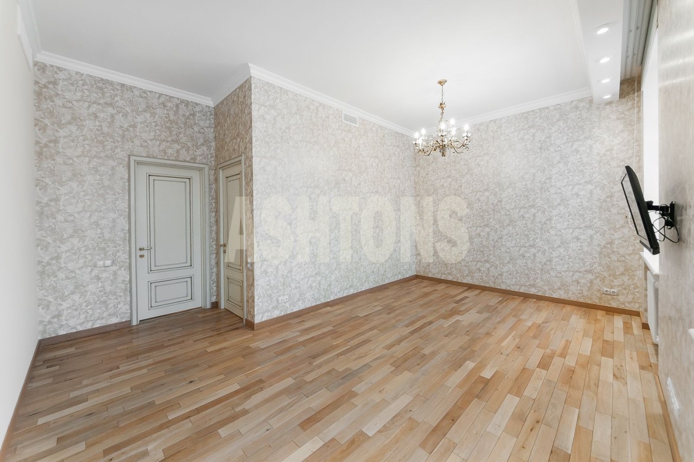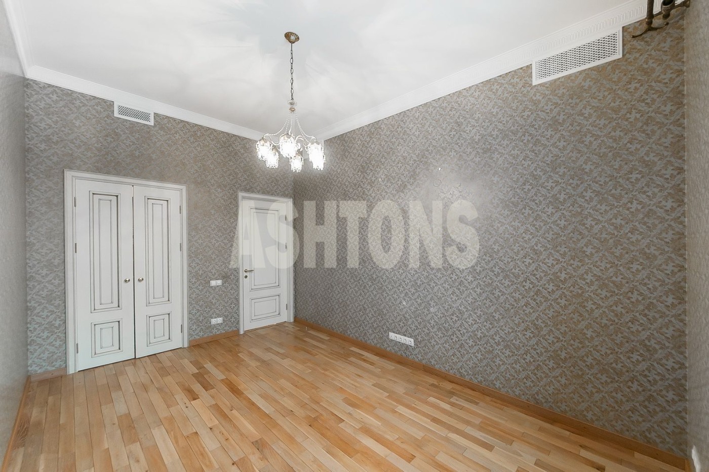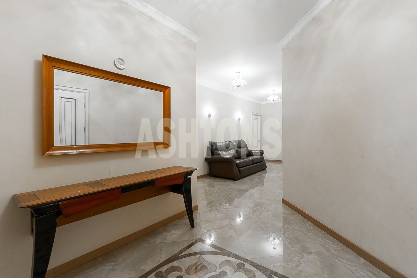 Functional layout: kitchen-living room, second bedroom with walk-in closets, two bathrooms with a jacuzzi and shower, loggia, and hallway. The apartment is FURNISHED (bedroom and study furniture included), and the option to remove or purchase additional furniture is negotiable. Expensive renovation using natural materials. The built-in kitchen is equipped with all appliances from leading global manufacturers. The windows face away from Tverskoy Boulevard. One parking space is available in the underground parking garage.