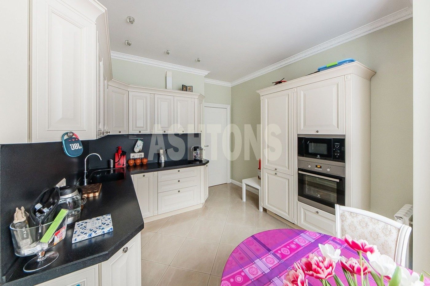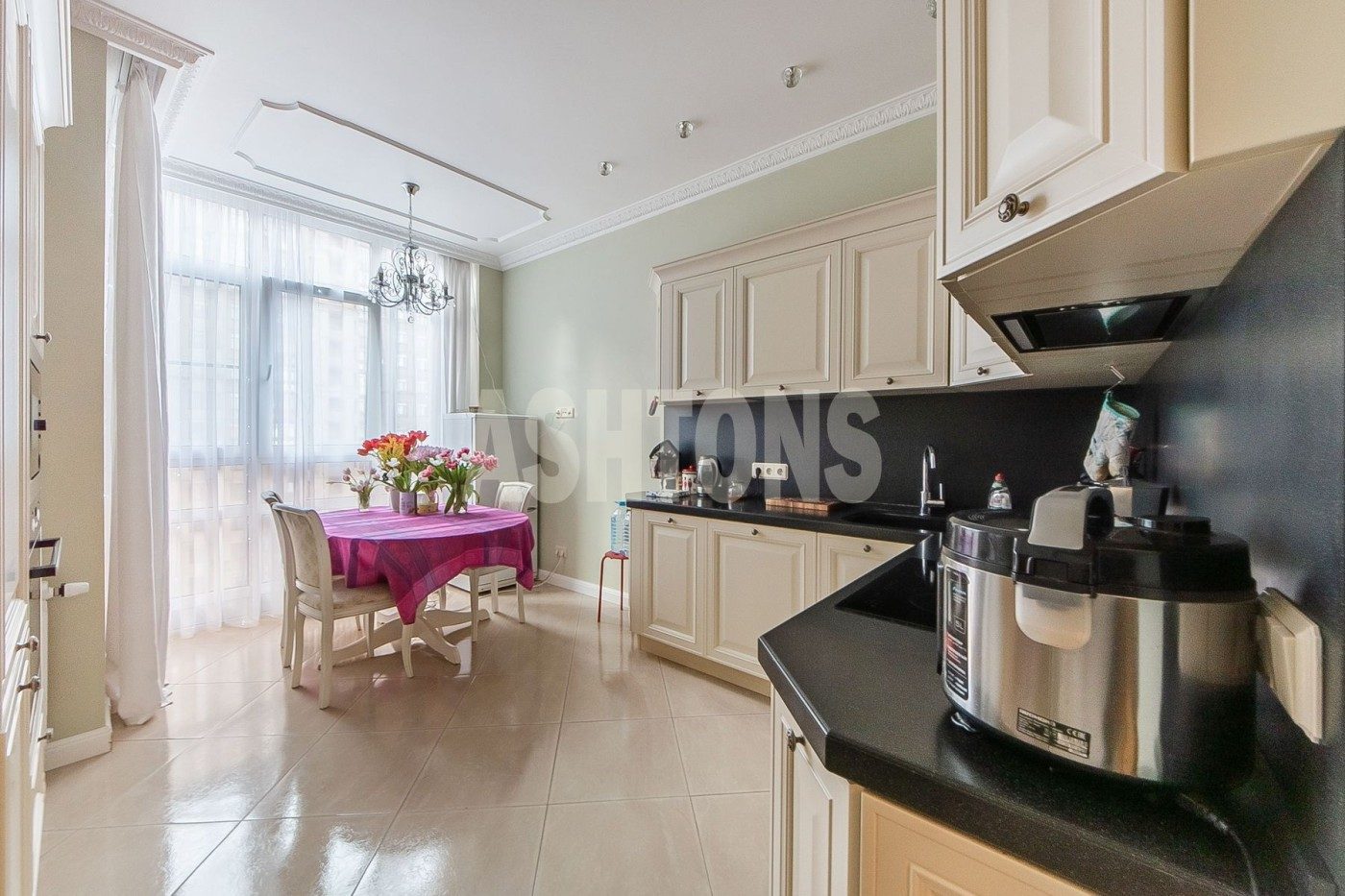 The residential complex is located in a gated, guarded area with concierge service. The landscaped grounds include playgrounds. Underground parking is available. Convenient transportation links are available: 5 km to the Moscow Ring Road and 5.5 km to the Third Transport Ring. Leningradskiy Prospekt is also accessible to central Moscow. Streshnevo and Shchukinskaya metro stations are within walking distance. Developed infrastructure: kindergarten, dentistry, children's clinic, child development center, plastic surgery clinic, spa center, notary, marketplace pickup points, mini-market. Nearby are the Kurchatov School, Shchukinsky Park, and Vsekhsvyatskaya roshcha..