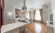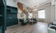 Стильная двухуровневая квартира на Варсонофьевском переулке в дореволюционном доме. Функциональная планировка квартиры. 1 этаж: гостиная, спальня с СУ и гардеробной комнатой, постирочная комната, холл. 2 этаж: гостиная-столовая-кухня, спальня с СУ и гардеробной комнатой, гостевой СУ. Квартира полностью меблирована, дорогая дизайнерская мебель. Встроенная кухня укомплектована всей бытовой техникой лучших европейских производителей. Есть сушильная машина. Парковка на закрытом дворе дома. Развитая инфраструктура района. Удобная транспортная доступность, быстрый выезд на Садовое кольцо, на Покровский бульвар и на Тверскую улицу. Станции метро Лубянка, Кузнецкий мост, Трубная и Цветной бульвар находятся в пешей доступности от дома.