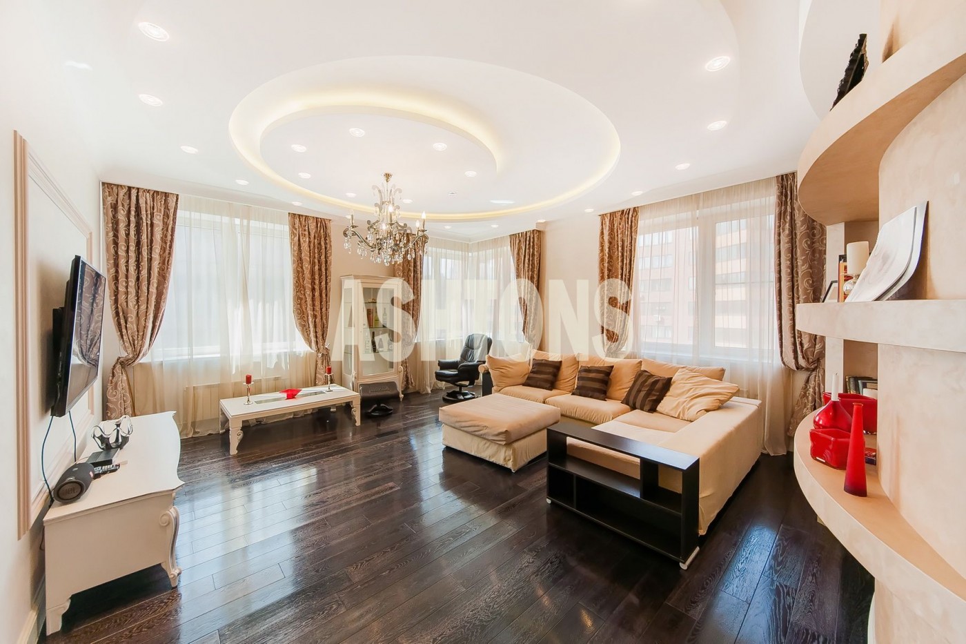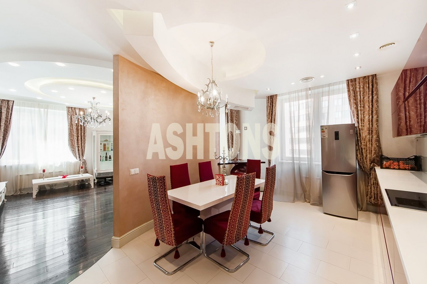 В квартире выполнен дизайнерский ремонт, удобная планировка: просторная кухня - гостиная, спальня со своей ванной и гардеробной, гостевой сан.узел с душевой кабиной, балкон.
