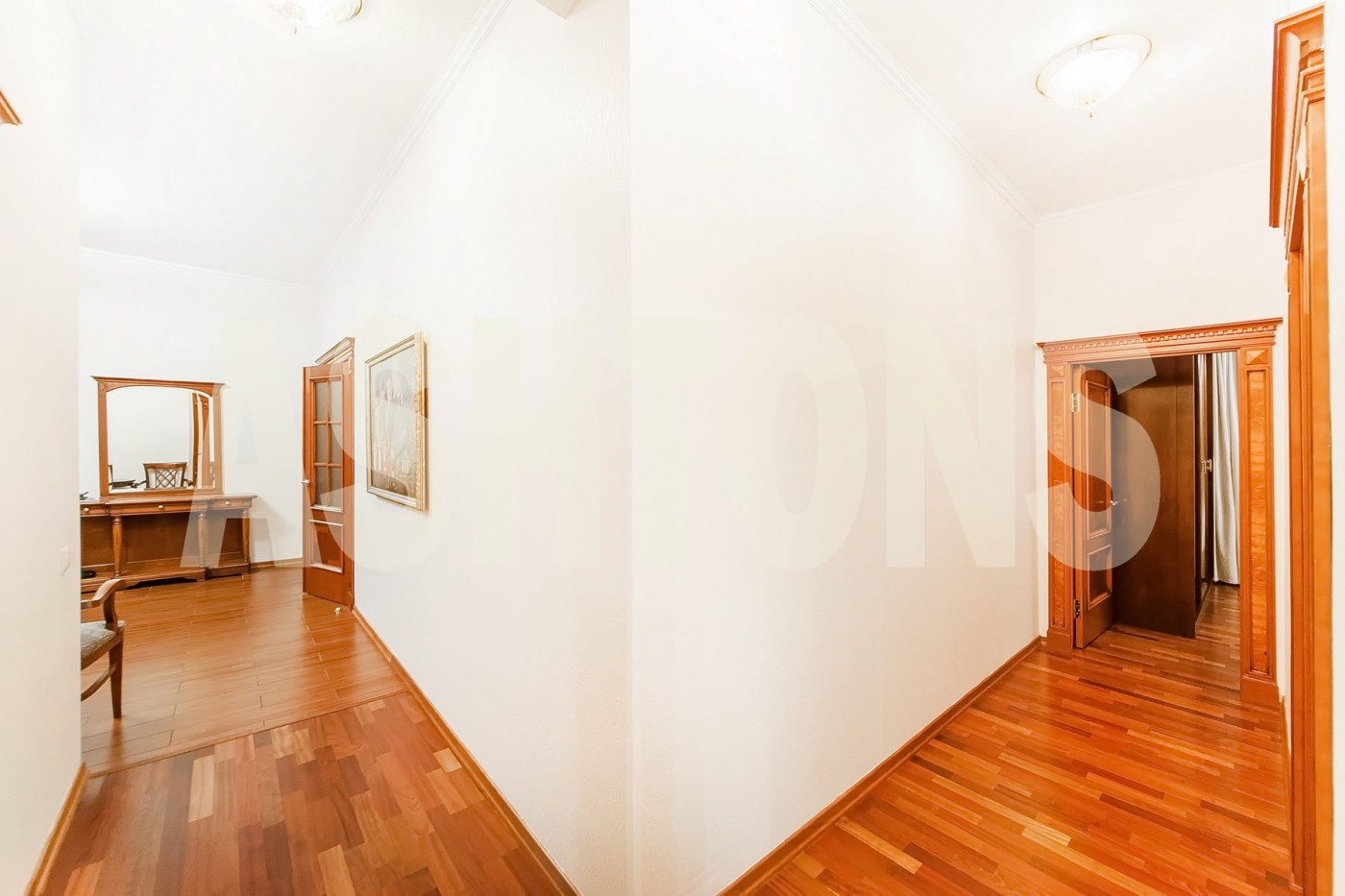 Квартира оборудована всей необходимой качественной бытовой техникой, дорогой мебелью из натуральных материалов.