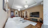 Предлагается в аренду просторная 4-комнатная квартира по адресу ул. Красная Пресня, дом 7, ЦАО, р-н Пресненский. Функциональная планировка квартиры: гостиная, кухня-столовая, мастер-блок, состоящий из 2-х спален и ванной комнаты, рабочий кабинет (гостевая спальня), гардеробная комната, гостевой СУ, холл. Кухня оснащена всей необходимой техникой для комфортного проживания. Панорамный вид из окон на Дом Правительства и центр города. Дом находится на охраняемой территории с тихим двором, который совмещает камерность центра города и моментальный доступ к любым транспортным узлов. Присутствует подземный паркинг. Развитая инфраструктура района: магазины, кафе, рестораны, музеи, театры, парк, медицинские и образовательные учреждения. Квартира находится в пешей доступности до ст.м Краснопресненсккая, Баррикадная.
